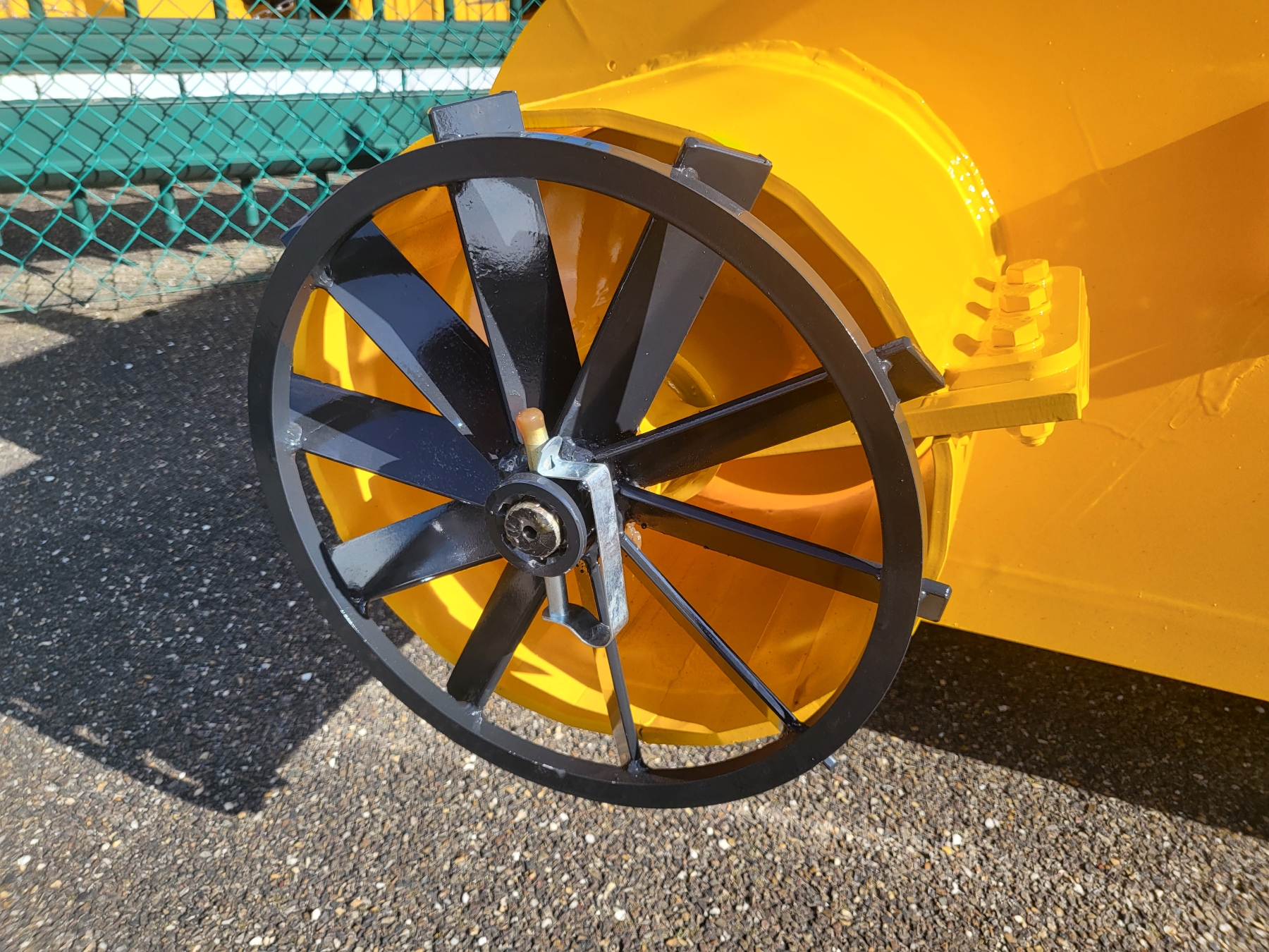 As standard, the machine has straight sides. The exit tube will stick out +/- 25cm. If, for example, a trench silo has to be shovelled, the option ‘extended side’ is recommended.