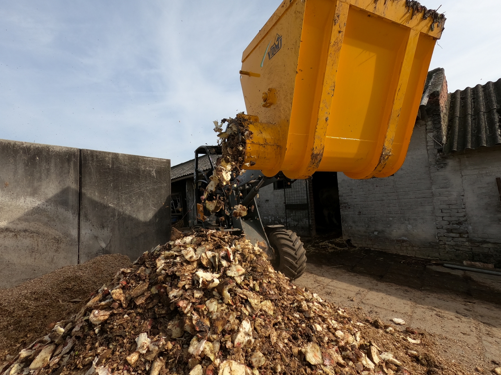 The EV-300 feed bucket is suitable for feeding (optional also mixing) short or dry products such as (silage) maize, pulp, concentrates, beetroot, potatoes, carrots, etc. An additional stirring auger prevents bridging above the distribution auger. The machine is hydraulically driven and fits on a shovel as well as on a tractor. Optionally, a beet or potato blade can be provided for cutting root crops. The bucket can be provided with a door at the exit that prevents feed from falling out during transport.